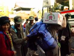 知恩院に到着 長野を朝4時30分に出発し、途中渋滞にあい、知恩院には10時に到着しました。 各自、装備を降ろし、結団式の会場に向かいます。 |