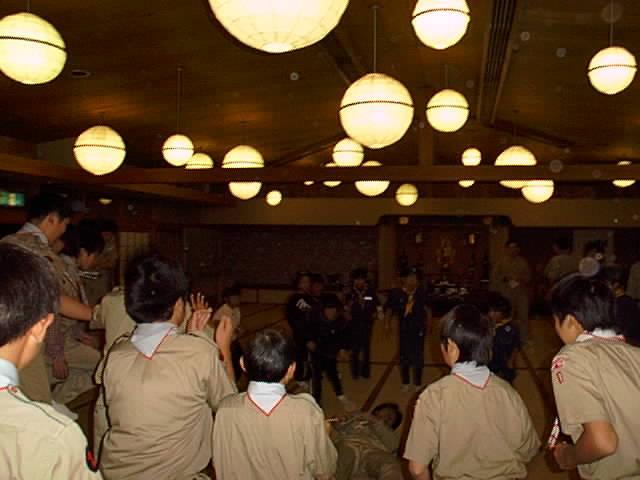 | 交流会 夜、京都第27団と栗太第7団のスカウトと交流会をしました。 各団の紹介やゲームをして、交流しました。 |