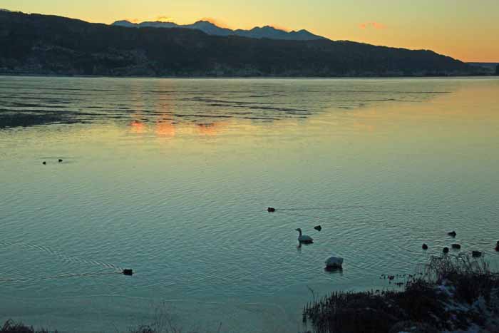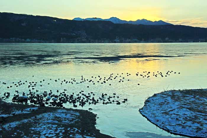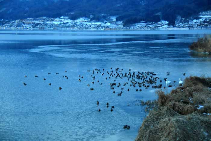 月末近くなって、急に暖かくなってきました。 安曇野 の白鳥も600羽ほどにまで増えた様ですが、諏訪湖の白鳥は2羽のままでした。 そんな白鳥も20日頃まで は諏訪湖に残っていた様ですがこの暖かさにさそわれて帰ってしまった様でした。 .