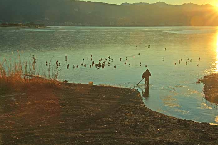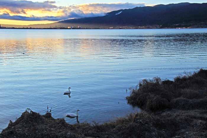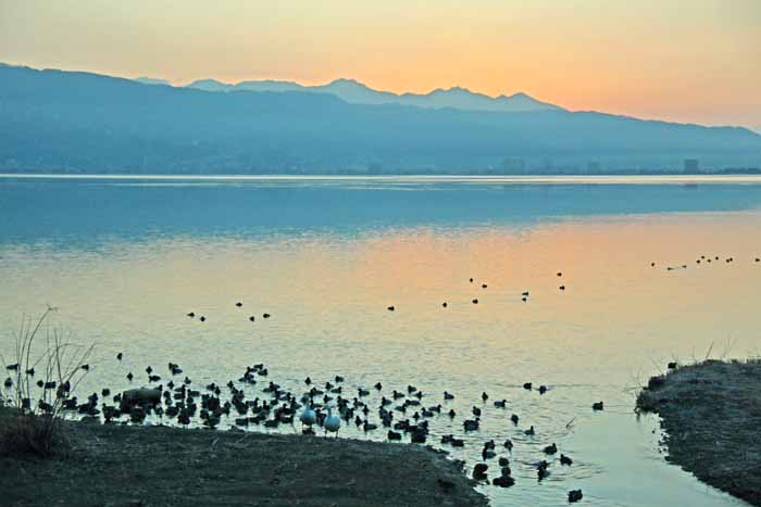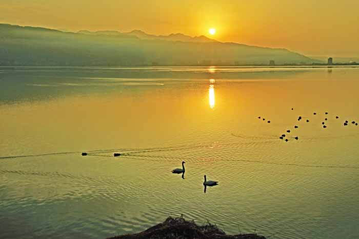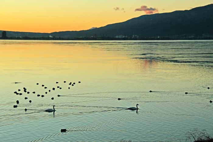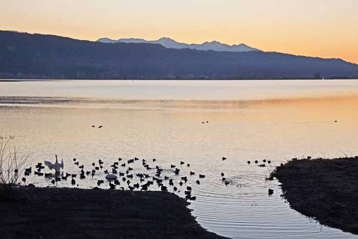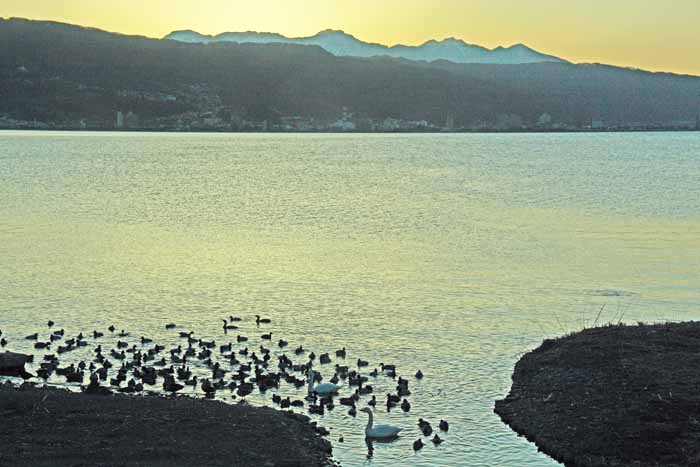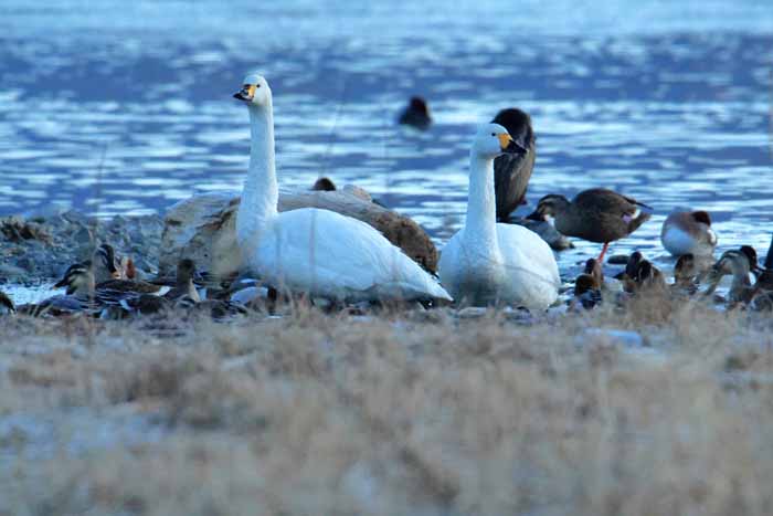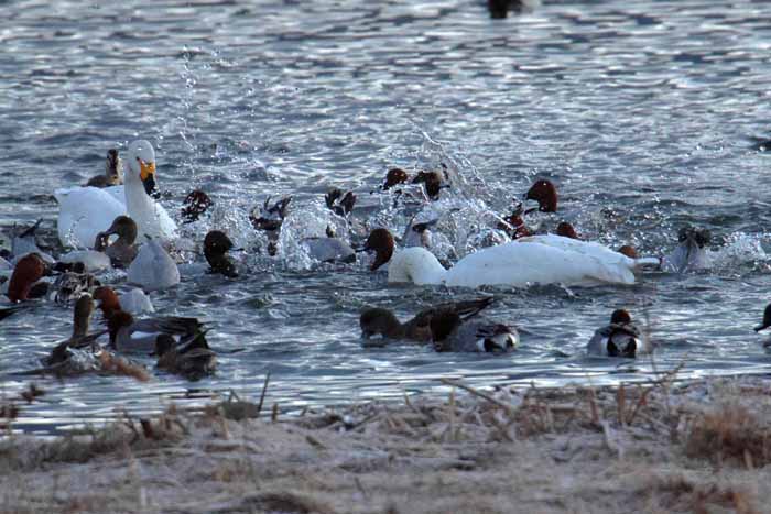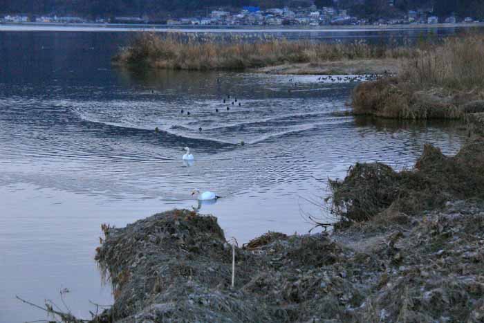 今シーズンも諏訪湖に常駐した白鳥は2羽で終わりました。 安曇野 の白鳥も2/13日頃からは北帰行もボチボチ始まった様で、諏訪湖の白鳥も20日頃には帰って行った様です。 諏訪湖の白鳥が観察 されたのは1960年だそうで、定着したのは1974年からで、その時も2羽のコハクチョウだったそうです。 .
