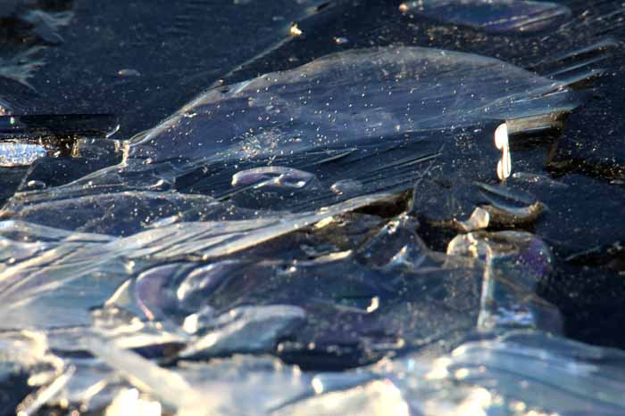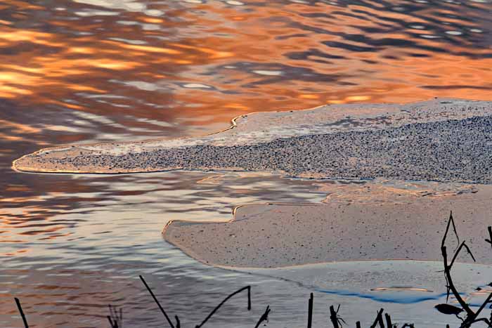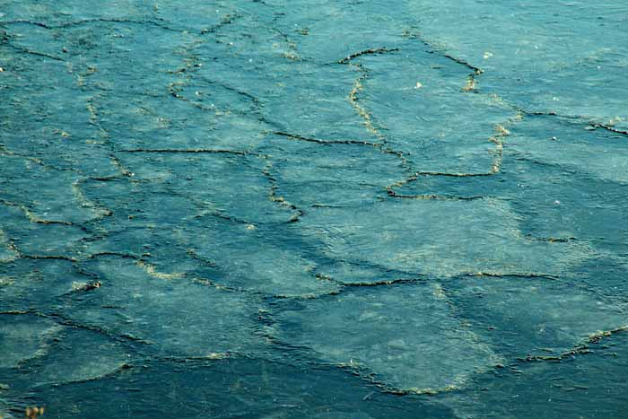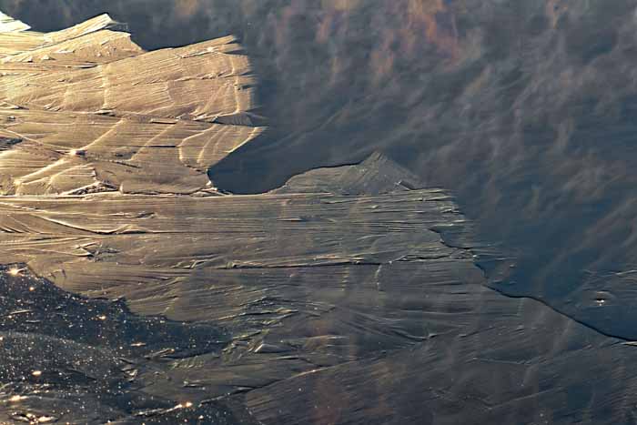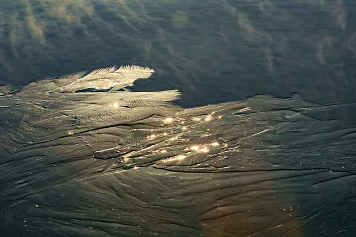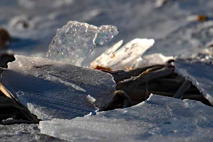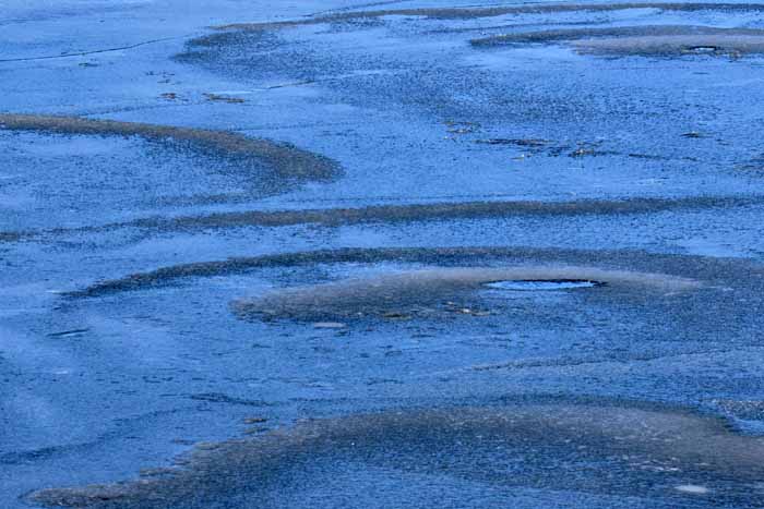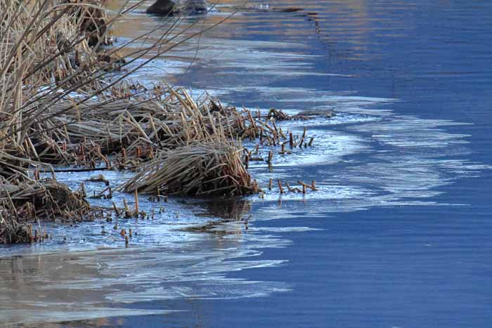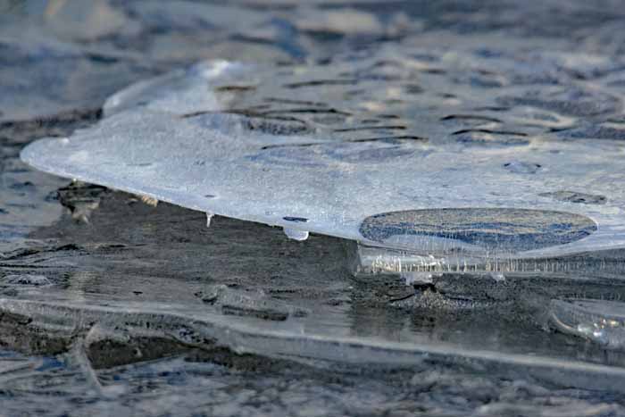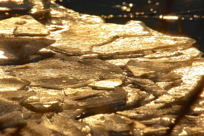 面は薄氷程度。 湖岸によせる板氷もあまり有