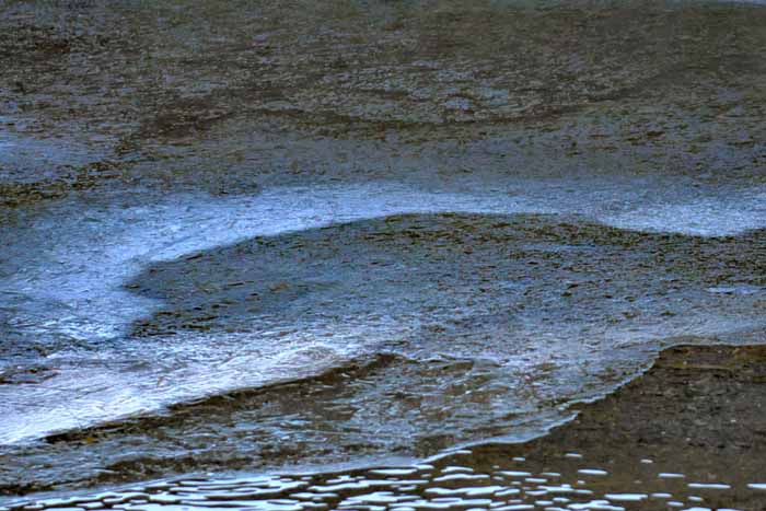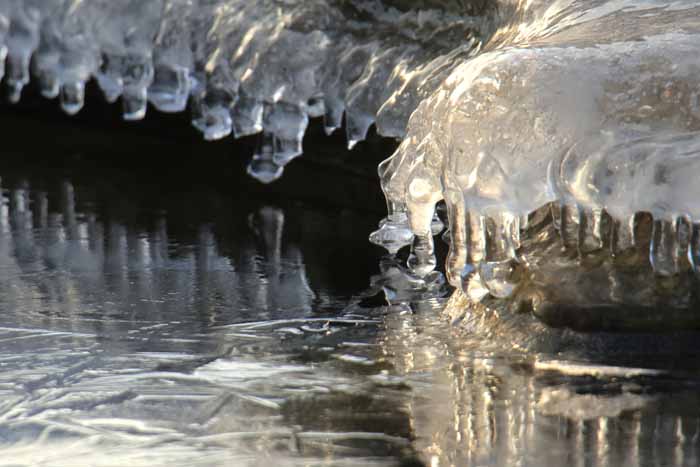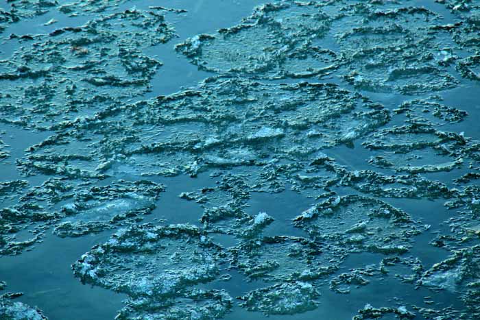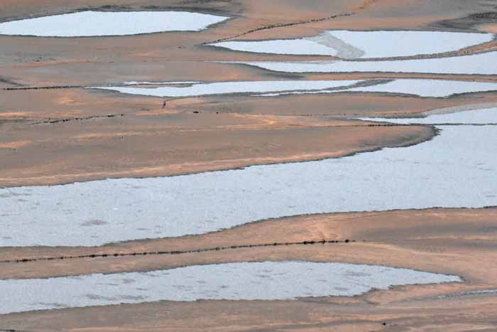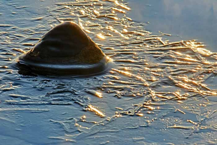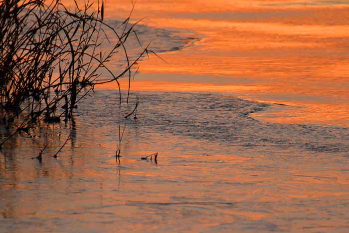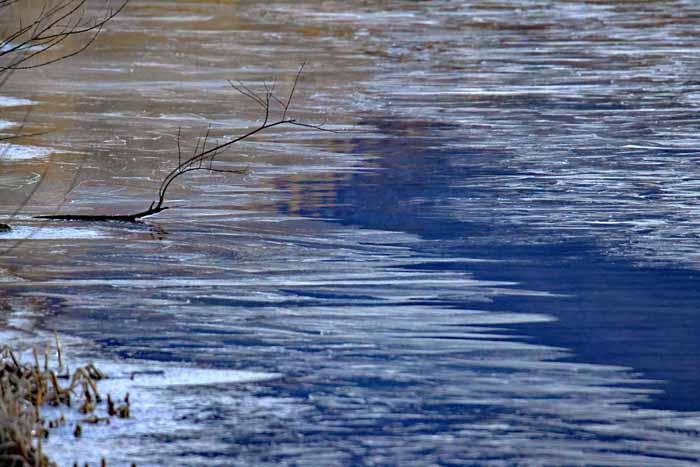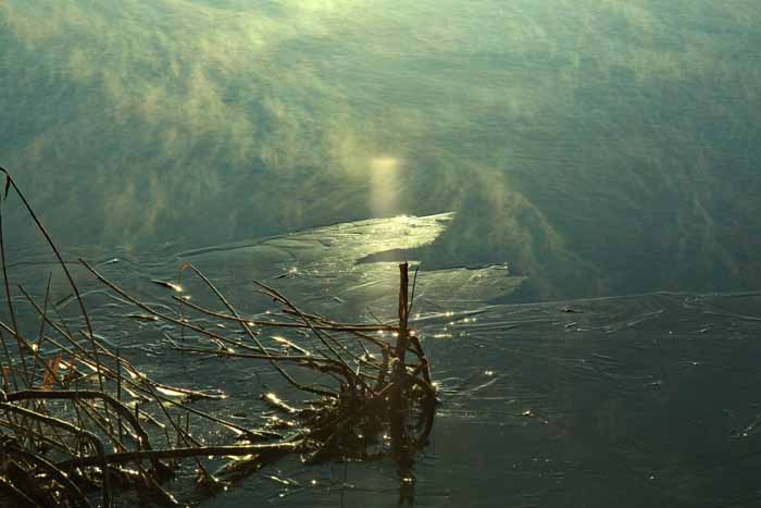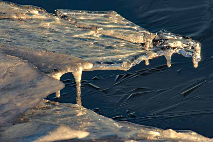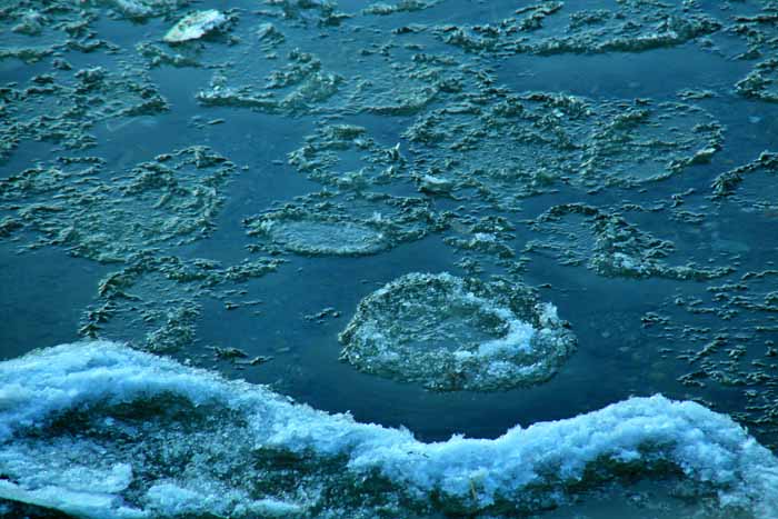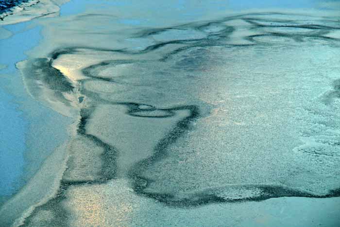 面は薄氷程度。 湖岸によせる板氷もあまり有