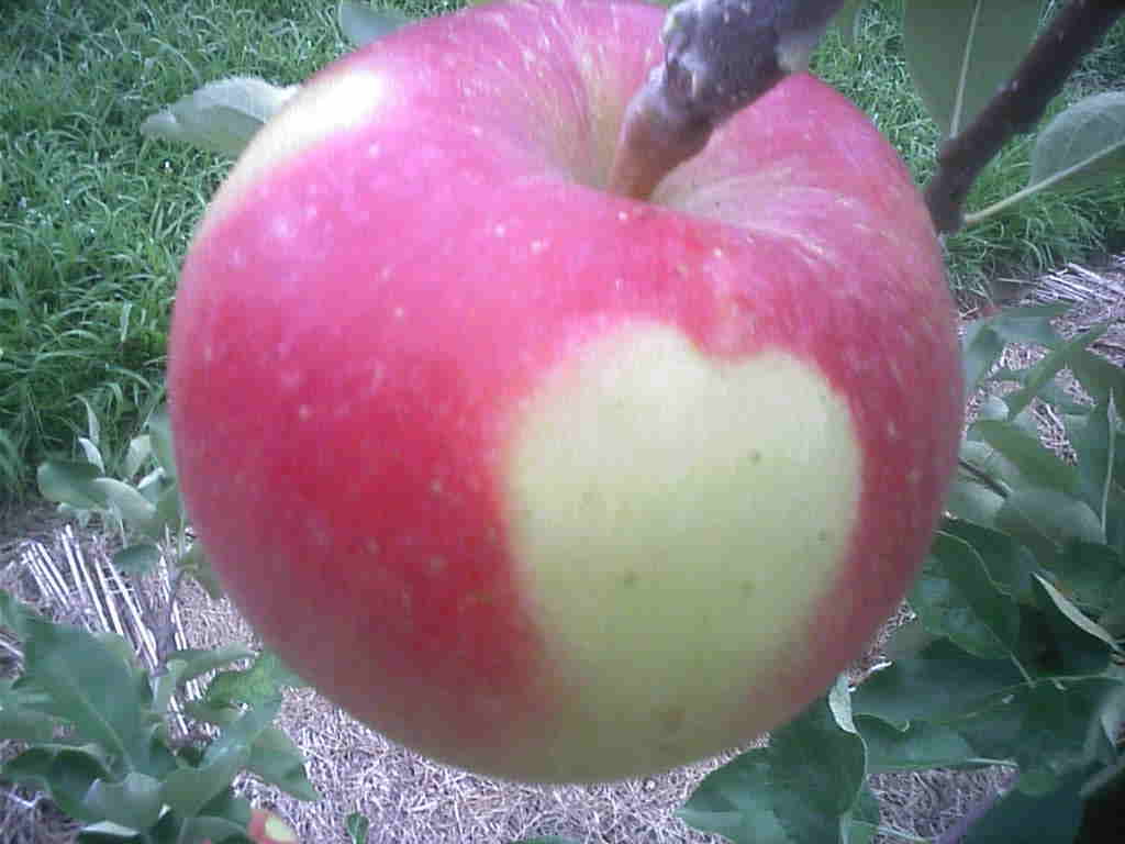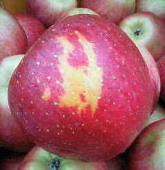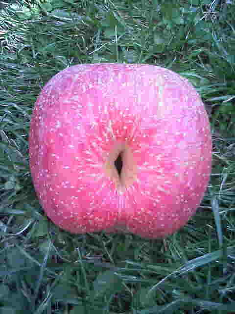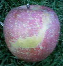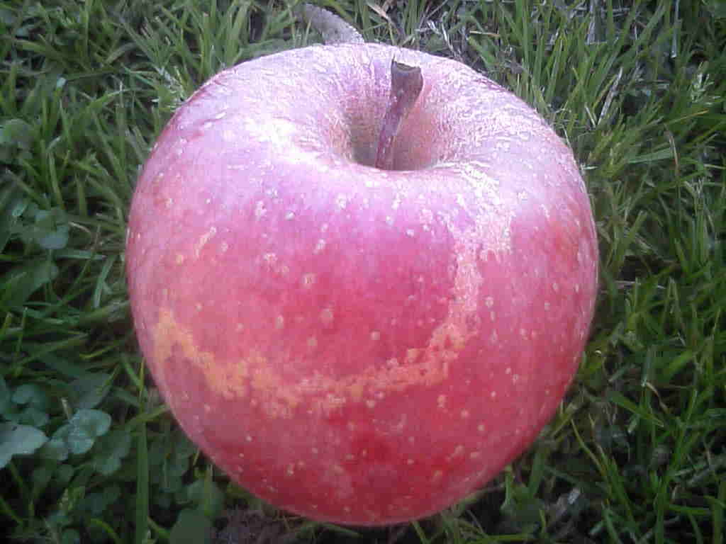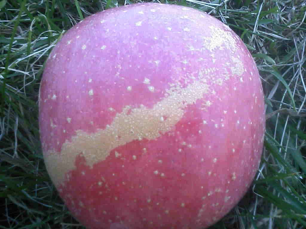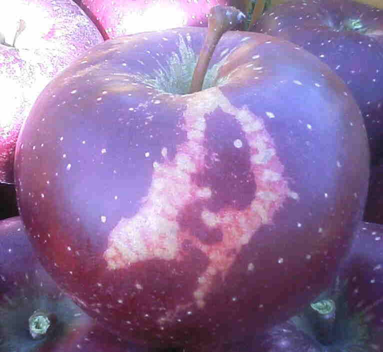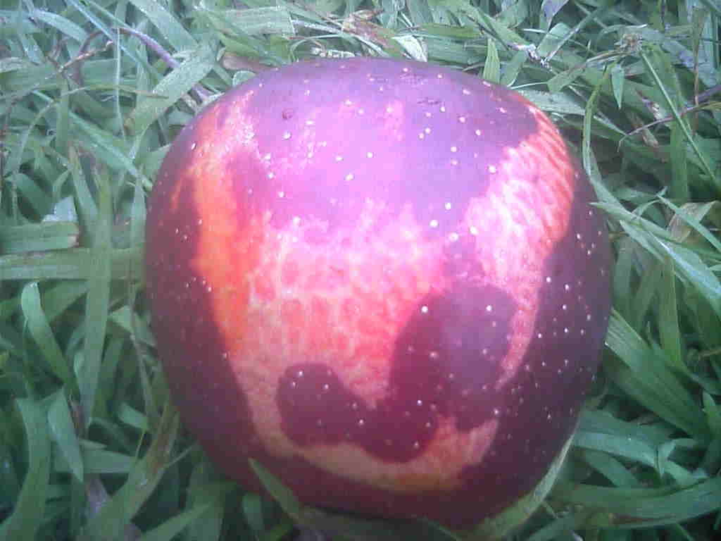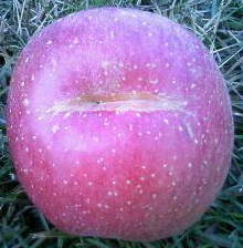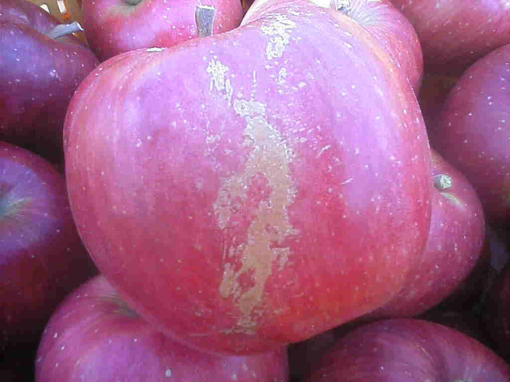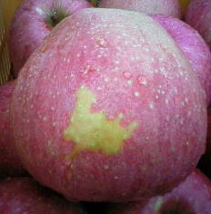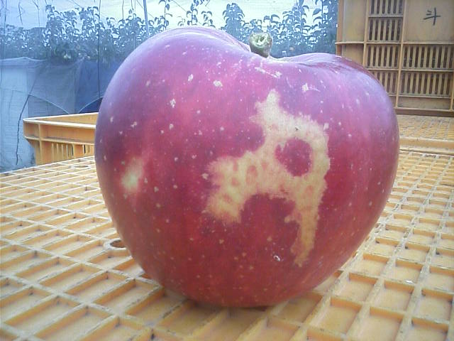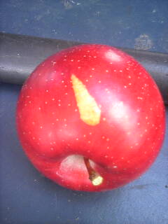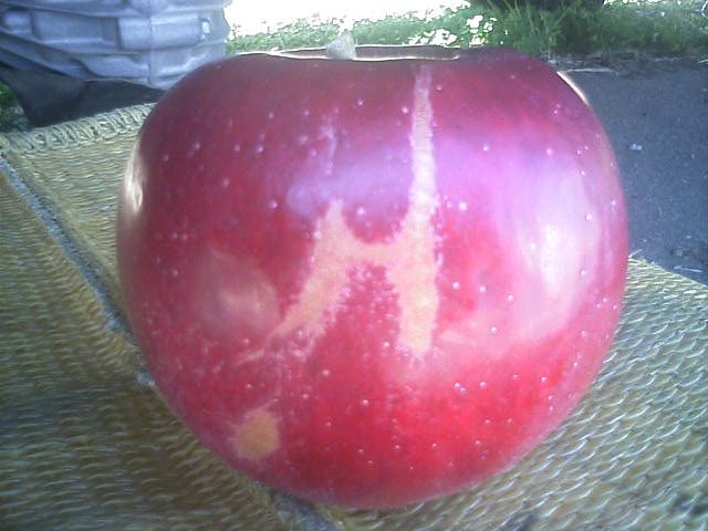 2009年11月13日 渋崎園 サンふじ ほぼ完璧な日本列島が。2006年とそれ以前の物に比べはっきりしています。 |