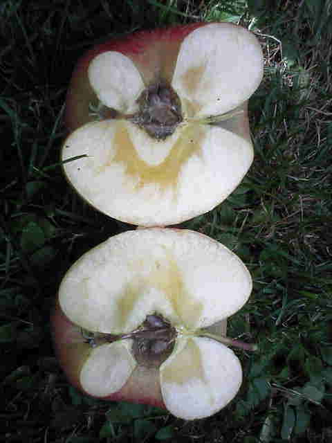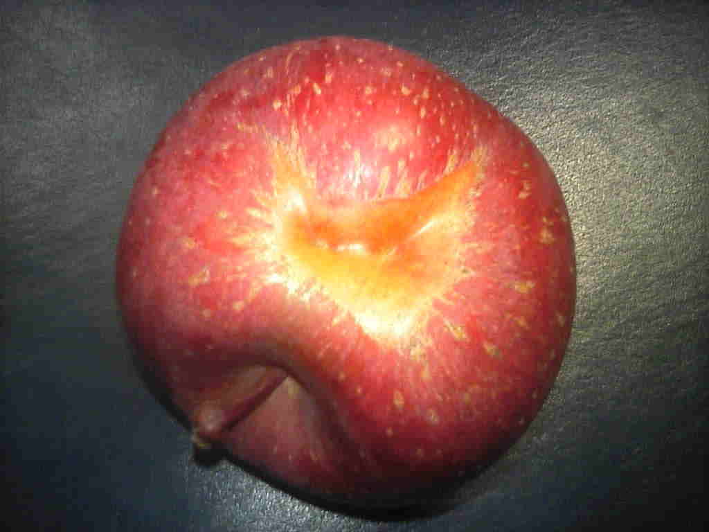 2008年11月12日 渋崎園 サンふじ 左画像のりんごを割ってみました。 |
