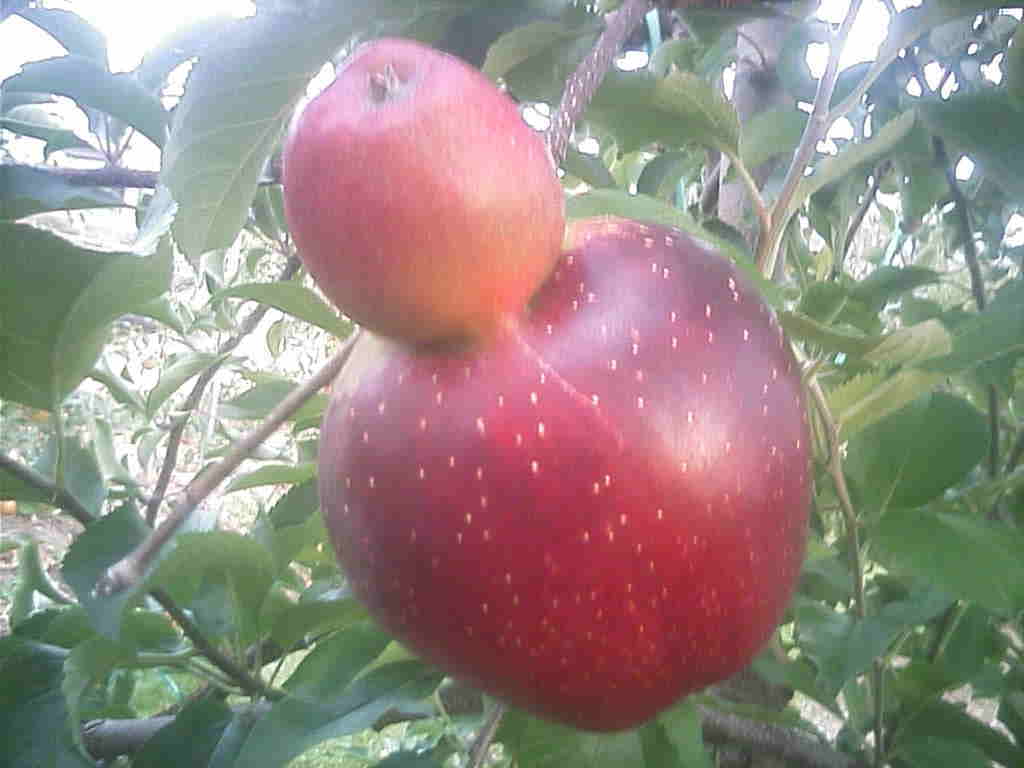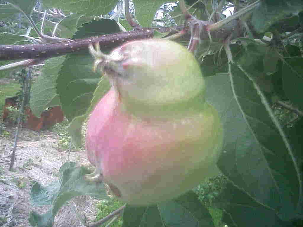2012/07/05 渋崎園 ふじ 中心果と側果が癒着した親子。 |