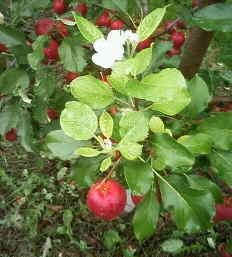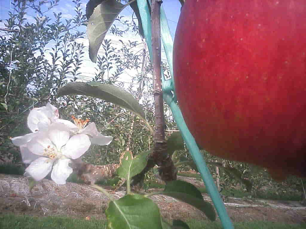 | 2006年10月12日 渋崎園 サン秋映 果実の実る秋に花が咲きました。秋と春が同居です。これこそ自然の造形の妙かも。 |