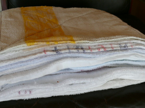 いま20枚簡単に縫い終えたけど、バスタオルの古い物も切って縫う予定