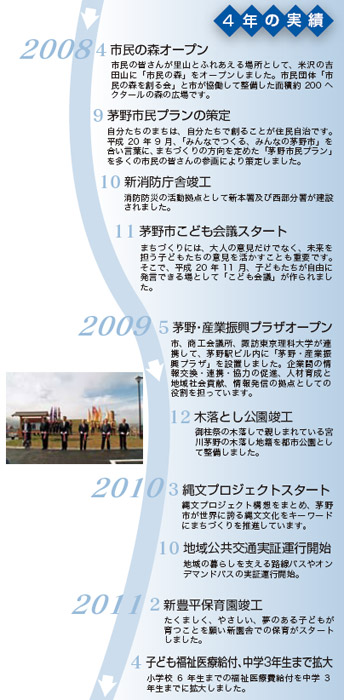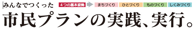 | ○「みんなでつくる、みんなの茅野市」を合い言葉に、まちづくりの方向を定めた「茅野市民プラン」は、行政計画としてだけではなく、市民みんなの行動指針、行動目標です。理想( ゆめ)を現実( かたち) にしていくために、市民力、地域力、そして行政力の3つの力を高め、「茅野市民プラン」を着実に実行していきます。「ひと」が輝き、「みどり」が輝き、「まち」が輝く茅野市を創っていきます。 | |