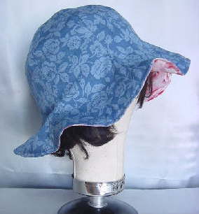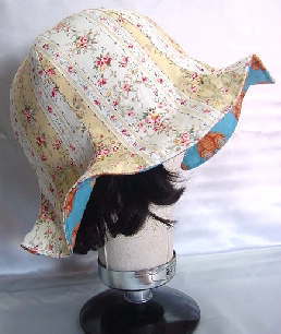 表はジーンズっぽい風合いのツイル。 紺に近いブルーに薄いブルーのバラ柄。 裏は普通の厚さのコットン、ピンクのバラ柄。 ちょっと平凡だったでしょうか? おとなしい(?)組み合わせです。 あー、でも。 色は全然違うので、 けっこう可愛いかなぁ。 ジーンズに似合いそうな帽子になりました。 |