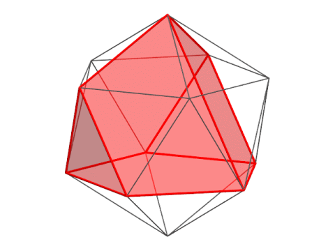 1本だけ辺の長さが異なる六面体 実はこの六面体、正二十面体の12の頂点のうちの8つを選んだ凸包になっていることに気が付きました。(気が付いていらした方はいらっしゃるでしょうか。)