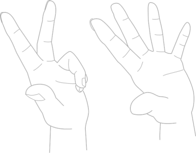 上の写真から、こんなトレース図を作りました。自分の手のバランスはいちばん見慣れているので、やっぱりこの図のほうが自分としてはしっくりきます。