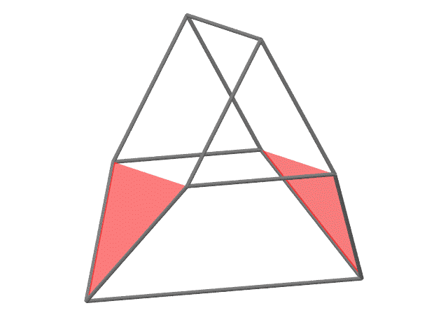 図 2 図3の赤い三角形は正三角形です。先ほどの正三角柱の側面の正方形とあわせて等辺五角形になっています。
