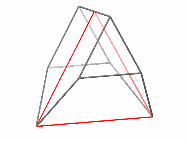 面の数が6、稜の数が12、頂点の数が8の三次元の凸多面体で、12本の稜のうち11本の長さが等しくて1本だけ長さが異なるものは存在するでしょうか?結論から言うと「存在します」。私が思いついたのはこんなかたちです。