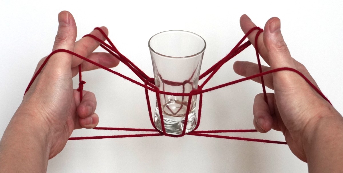 スーダンの鳥の巣 手首を利用する取り方です。これも美しい六角錐ができます。「ナバホの鳥の巣」と比べると長いあやとり紐が必要です。でも「鳥の巣」の六角錐は小ぶりになります。