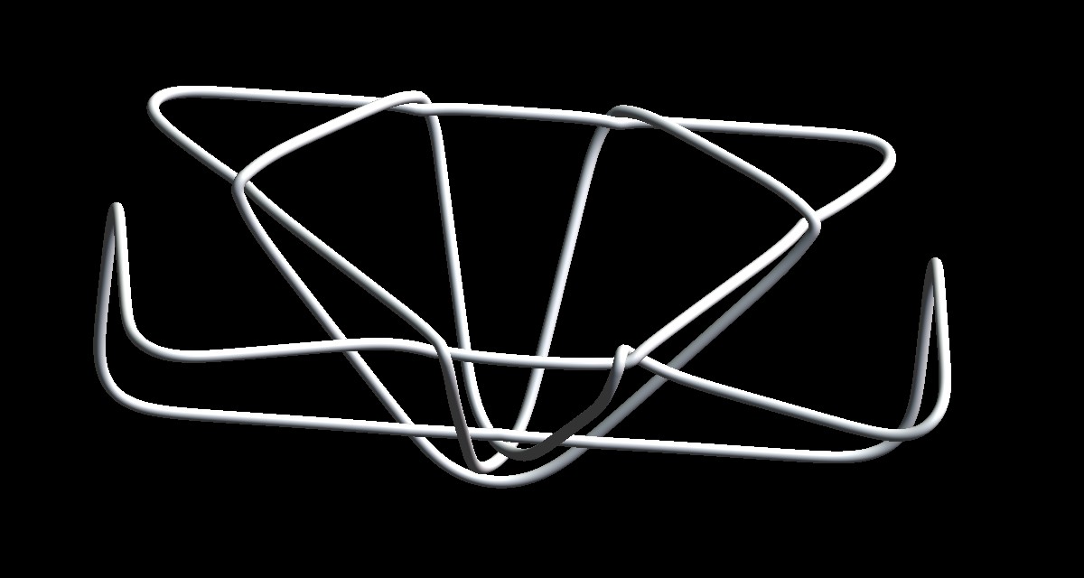 ナバホの鳥の巣 下に凸の六角錐の形状の作品です。糸はゆるくたるませたかたちにするので、直線的ではなくおわんのようなかたちになります。