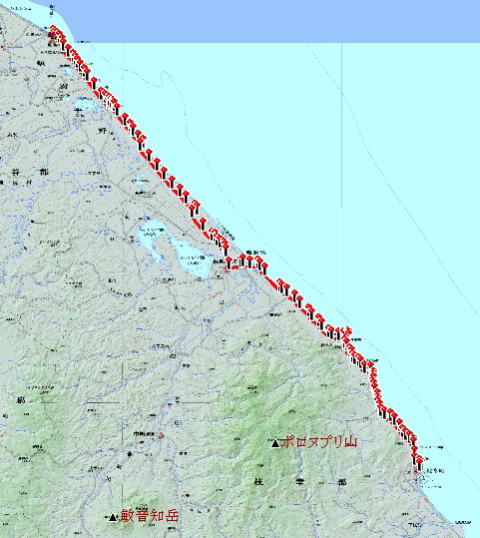 本日の経路 浜鬼志別ーー枝幸 60km