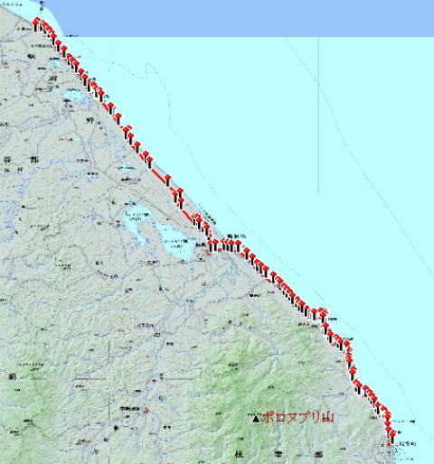 本日の経路 枝幸ーー浜鬼志別 60km