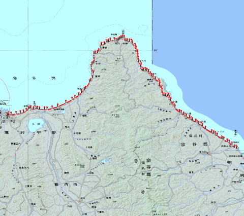 本日の経路 稚内--宗谷岬--浜鬼志別 60km
