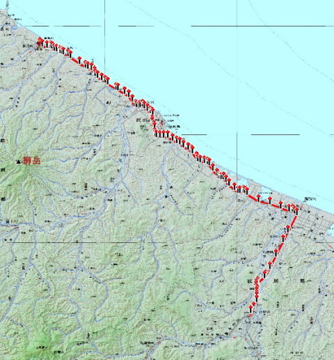 本日の経路 興部--紋別--湧別--遠軽 70km