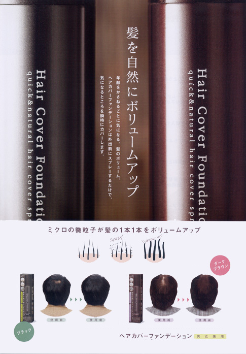 | 髪にボリュームが足りない、うす毛で地肌が見えるのが気になる方に最適です。 ミクロの微粒子が白髪やうす毛を瞬時にカバーします。 |