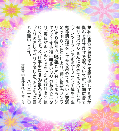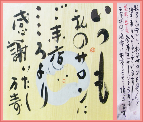 貴方の誇りです。小さなサロンですので5日前から御予約下さい。お願い致します。