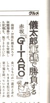 陽気で楽しいピッツェリア「GITARO」へようこそ! 「ぎたろう軍鶏」を味わうには、東京・赤坂のピッツェリア 「GITARO」へ出かけください。 週間新潮のグルメコーナーにも紹介していただきました。 島津シェフの話・・・ 「まず、胸肉のカルパッチョ・ピエモンテ風を召し上がって みてください。料理人の目で見て、普通の地鶏じゃ胸肉を 生で使おうとは思いませんが、この皮のハリ、肉の締まり 具合、薄いピンクの見事な色と艶と色合い。自分でも食べ たくなります」 湯引きして霜降りになった軍鶏の胸肉は、正に中トロの 風味。くせのない繊細なその味をバジルベースのグリーン ソースが引き立ている。 ・・・・・・週間新潮より 「GITARO」は午前11時半から午後2時 午後5時半から午後10時まで営業。年中無休です。 港区赤坂7-6-47 赤坂ニュープラザ1階 TEL. 03-5570-2130 |