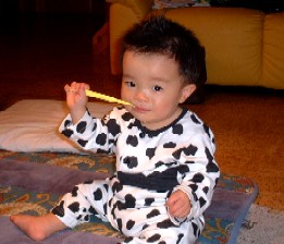左;04.08.14 つかまり立ちできた! 中:04.09.12 父さんの帽子大きいなぁ 右:04.09.21 はみがき大好き