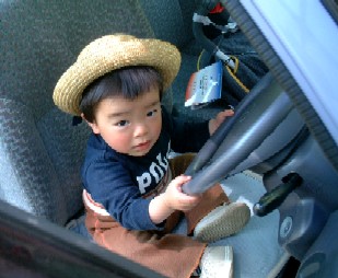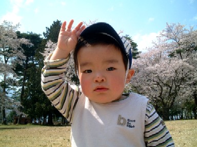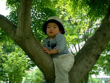 左:05.04.16 桜の下で敬礼! 中:05.05.04 初めての運転席 右:05.05.29 木登り