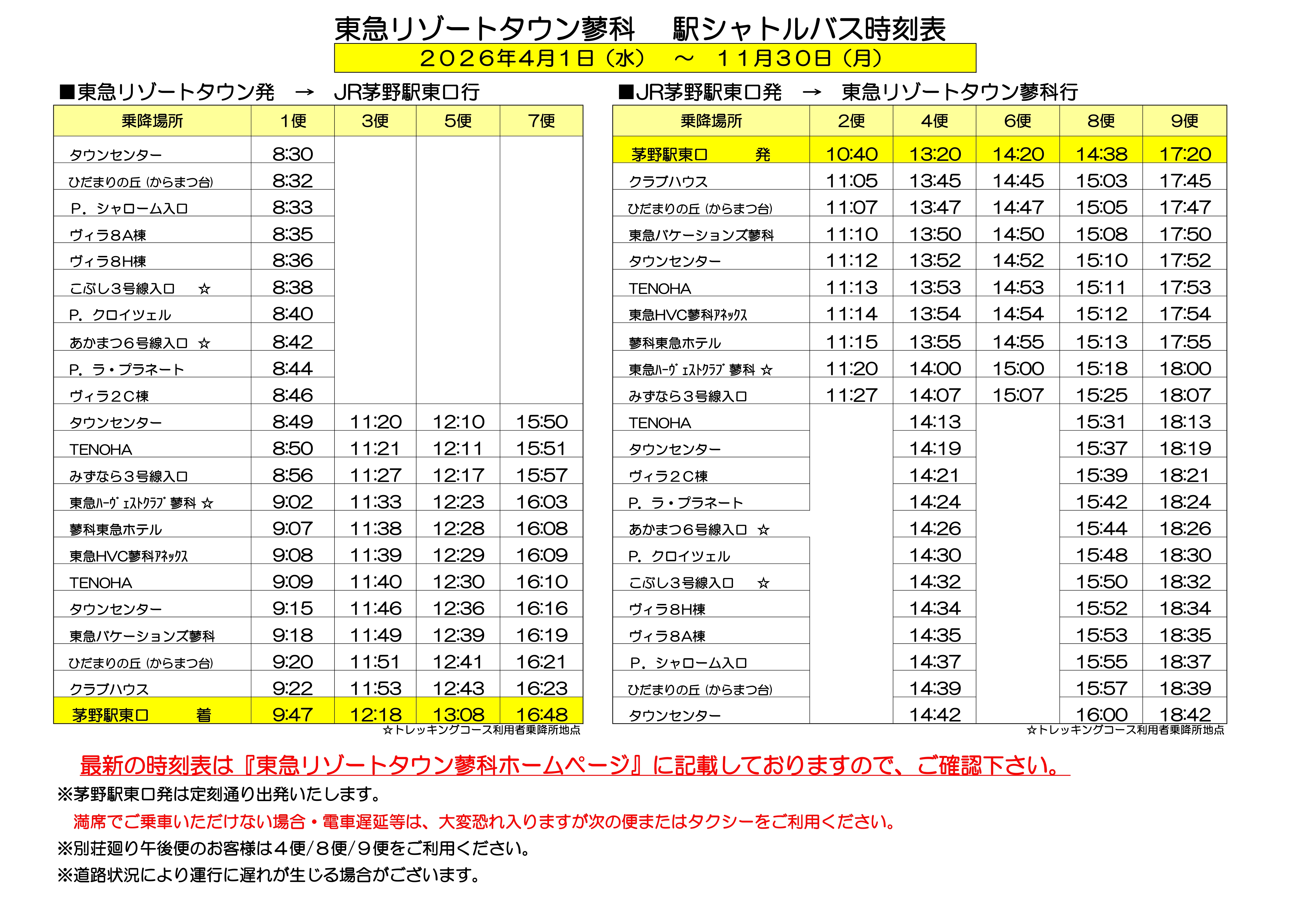<2025 グリーンシーズンシャトルバス時刻表>
