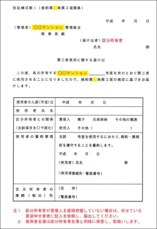 <居住者名簿の備えは> このマンションは現に居住している区分所有者が少数で、多くが賃貸管理会社に任せきりで、安定収入・満室経営を求めてサブリース(借上家賃保証)契約をしている区分所有者がほとんどです。 マンション管理の最高自治規範である管理組合規約では 「第三者使用に関する届出」