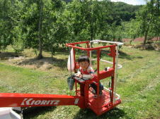 |  | 工事作業車など特殊自動車が好きな息子は、りんご作業で使う、作業車の作業台がかなり気に入ってしまいました。