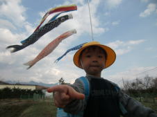 |  | 鯉のぼりの前でポーズです
