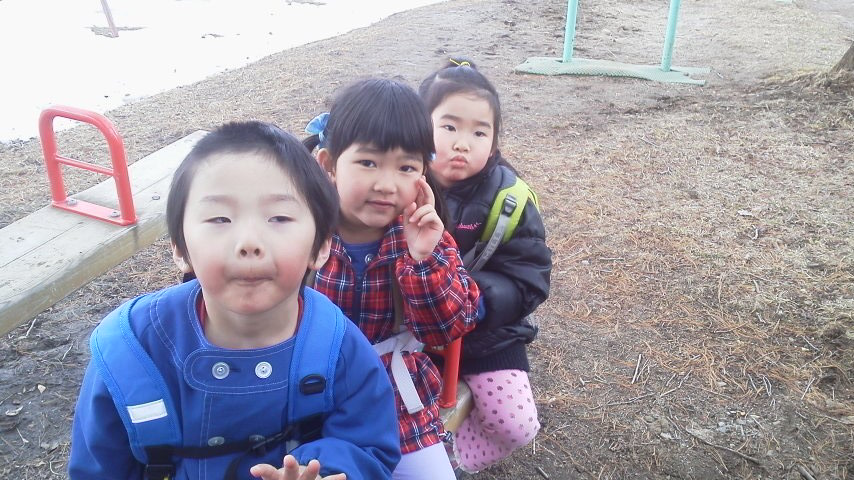 |  | 今日は卒園式があり、息子は来月年中になりますが、同じクラスの友達が隣の保育園に行くことになり、最後のシーソー遊びを楽しみました。