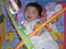 |  | ジムのおもちゃで楽しく遊んでいます。