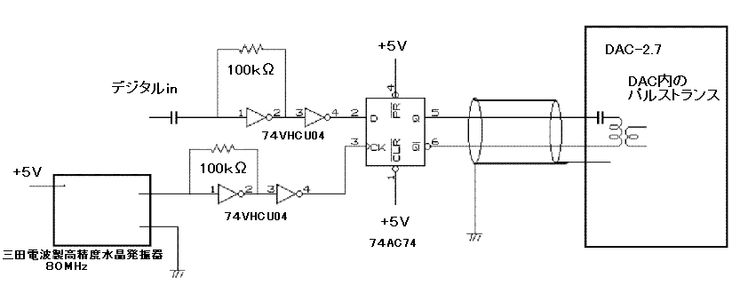 デジタル側の74VHCU04,74AC74と