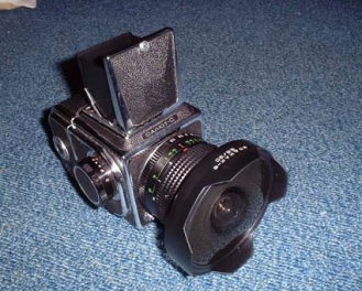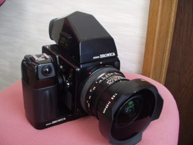 ブロニカSQは、6×6判のカメラで明るいファインダー、小型のボデーとあいまってなかなかの使い心地です。プラスチックボデーはやや安っぽい感じもしますが、中身が濃い割に軽いのが特徴です。SQには魚眼レンズが用意されています。6×6には魚眼レンズがよく似合う。ゼンザノンPS35mmは可も無く負荷もない魚眼レンズですが、PE30mmよりレアかもしれません。