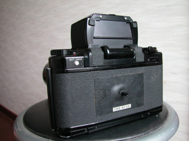 当時ファインダー交換により、内臓露出計を使用できるシステムが流行していました。ペンタックス67やニコンF、ミノルタX−1など巨大なTTLファインダーを用意していました。そんな中でもノリタのTTLファインダーは超巨大で、真に頭でっかちのガンダムでした。