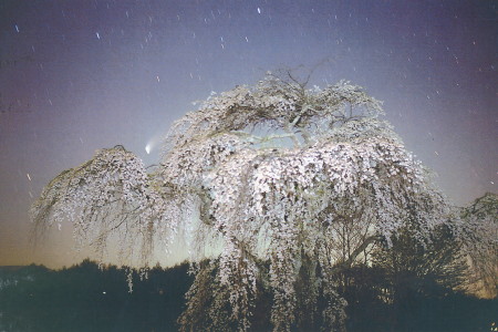 桜の後ろに沈む彗星は、