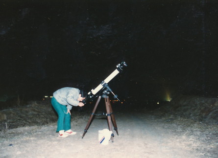 この頃は手動追尾で天体を撮影していた。明視照明で十字線の中