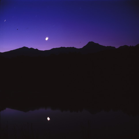 月と山の明度が同じになる時を選んで撮ってみ