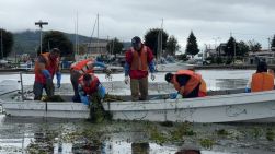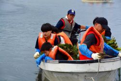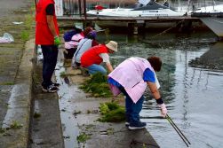 当日は、諏訪市セーリング協会に協力を得て、当クラブメンバーや県諏訪地域振興局職員の方、地元の小中高生のみなさんと共に、諏訪湖の繁殖する水草ヒシの除去や、湖畔のゴミ拾いに汗を流しました。