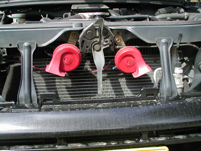 純正のホーンはなんであんなにしょぼい音がするのでしょうか?若干ステーを内側に曲げて装着です。 |