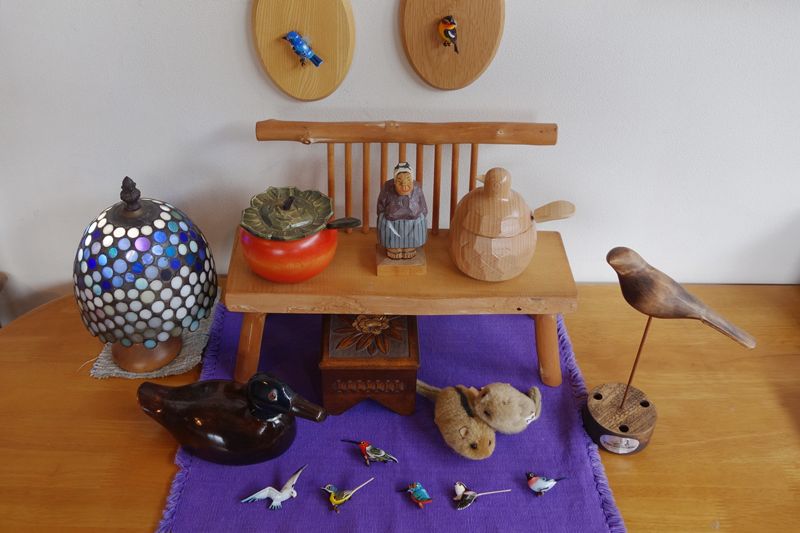 常設展示; 〇木彫りの野鳥のブローチ ”ラブバード 〇木彫工芸 ”信州農民美術品”